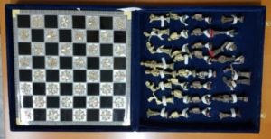 Ajedrez en NACAR y Bronce MEDIDA TABLERO 32 X 32 CTS figuras tematica egipcia