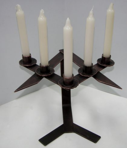 Candelabro Artesanal de Forja en forma de Compas y Escuadra acabado en Bronce