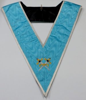 COLLARIN R.·.E.·. GUARDA TEMPLO INTERIOR EN MOARE DE ALTA CALIDAD hilo de oro BORDADO A MANO