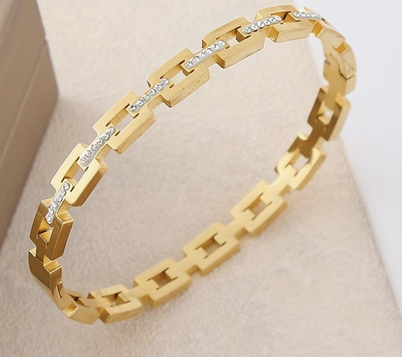 Pulsera de CADENA de UNION EN ACERO INOX CON BAÑO DE ORO Y CIRCONITAS