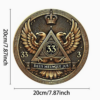 Placa metalica en aluminio, del grado 33 , Arte de Pared, Aluminio Místico Masónico Dorado, Diámetro de 20 x 20 cmt